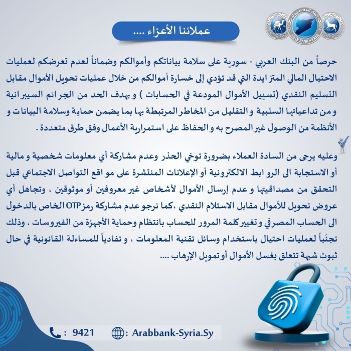 - خبر عاجل بخصوص زيادة رأس مال البنك العربي - سورية